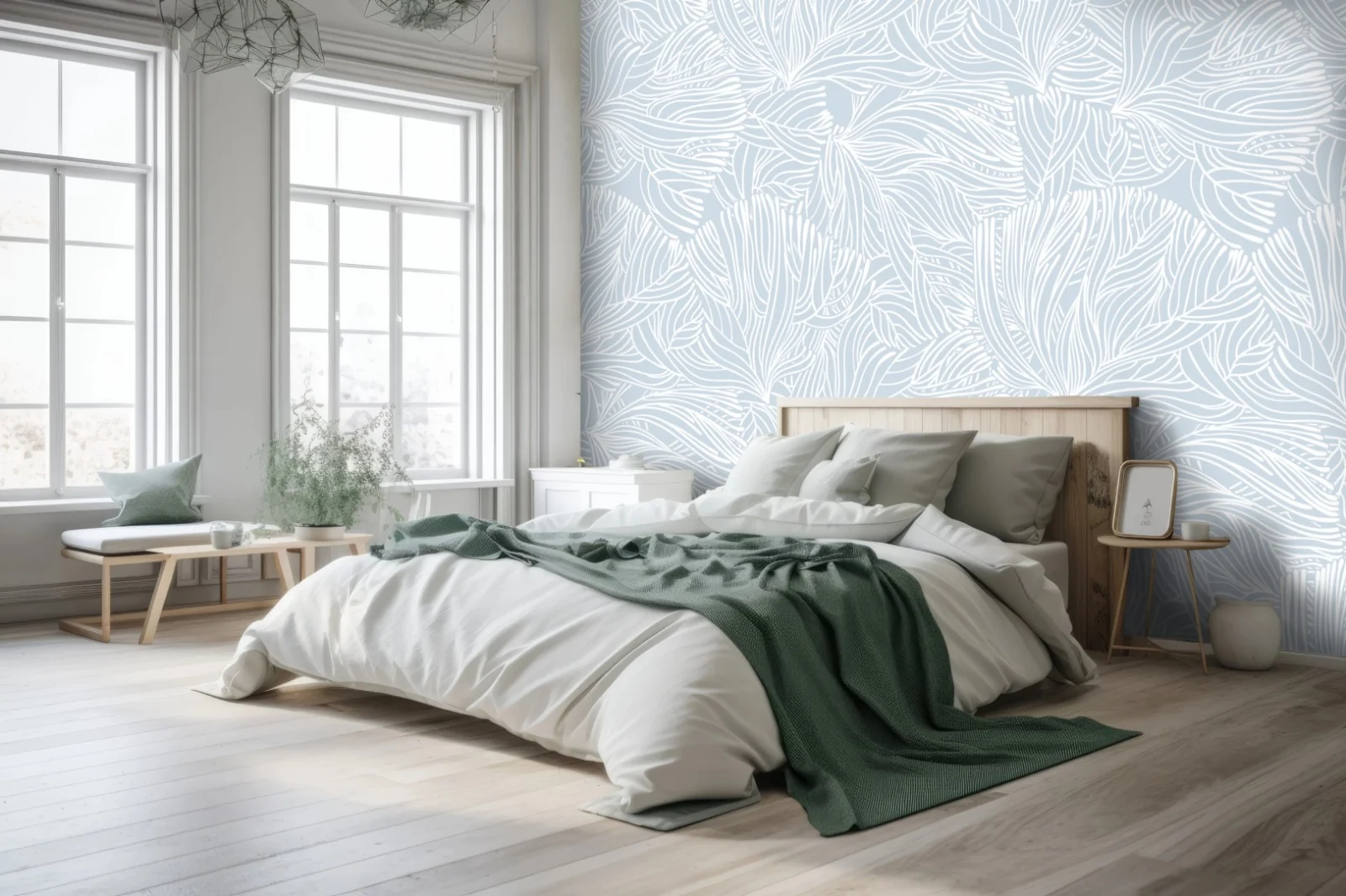 - minimalista, motivo botanico, bianco, azzurro, stile moderno, linee sottili, pattern floreale, design astratto, colore pastello, texture decorativa