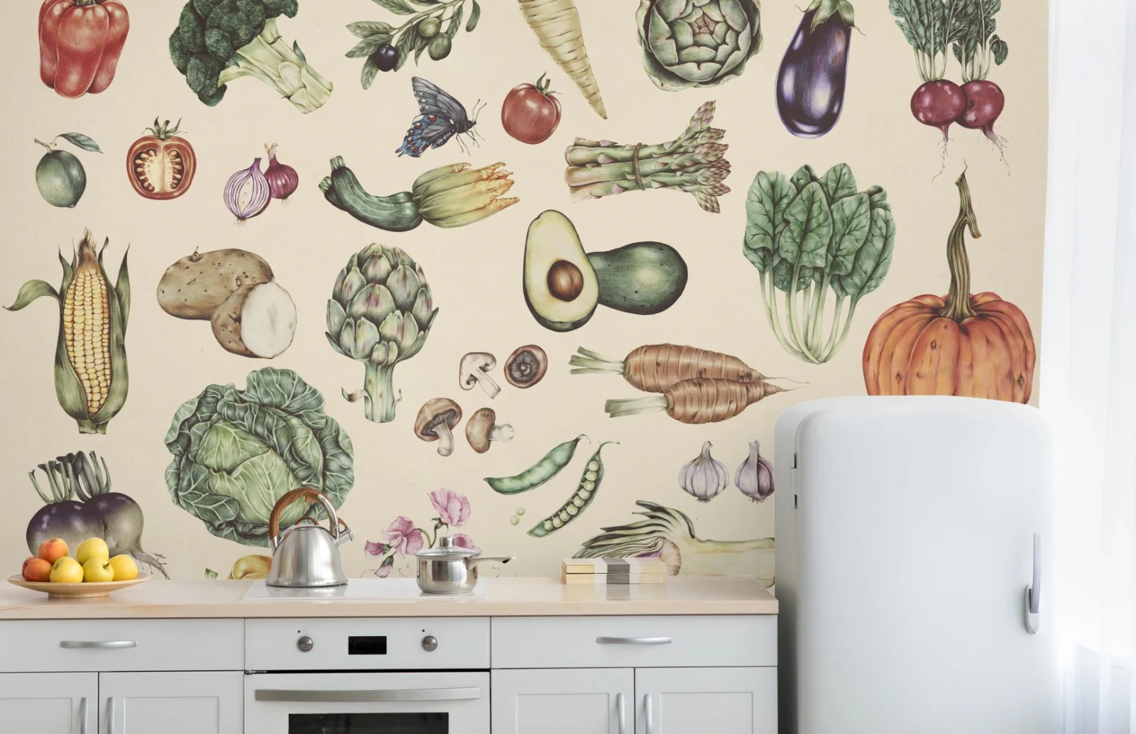 Carta da parati Motivo botanico di verdure disegnate a mano