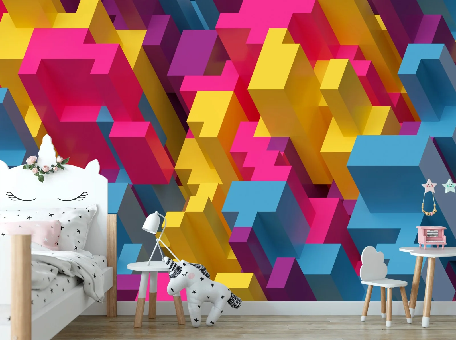 Carta da parati Mosaico voxel colorato e geometrico