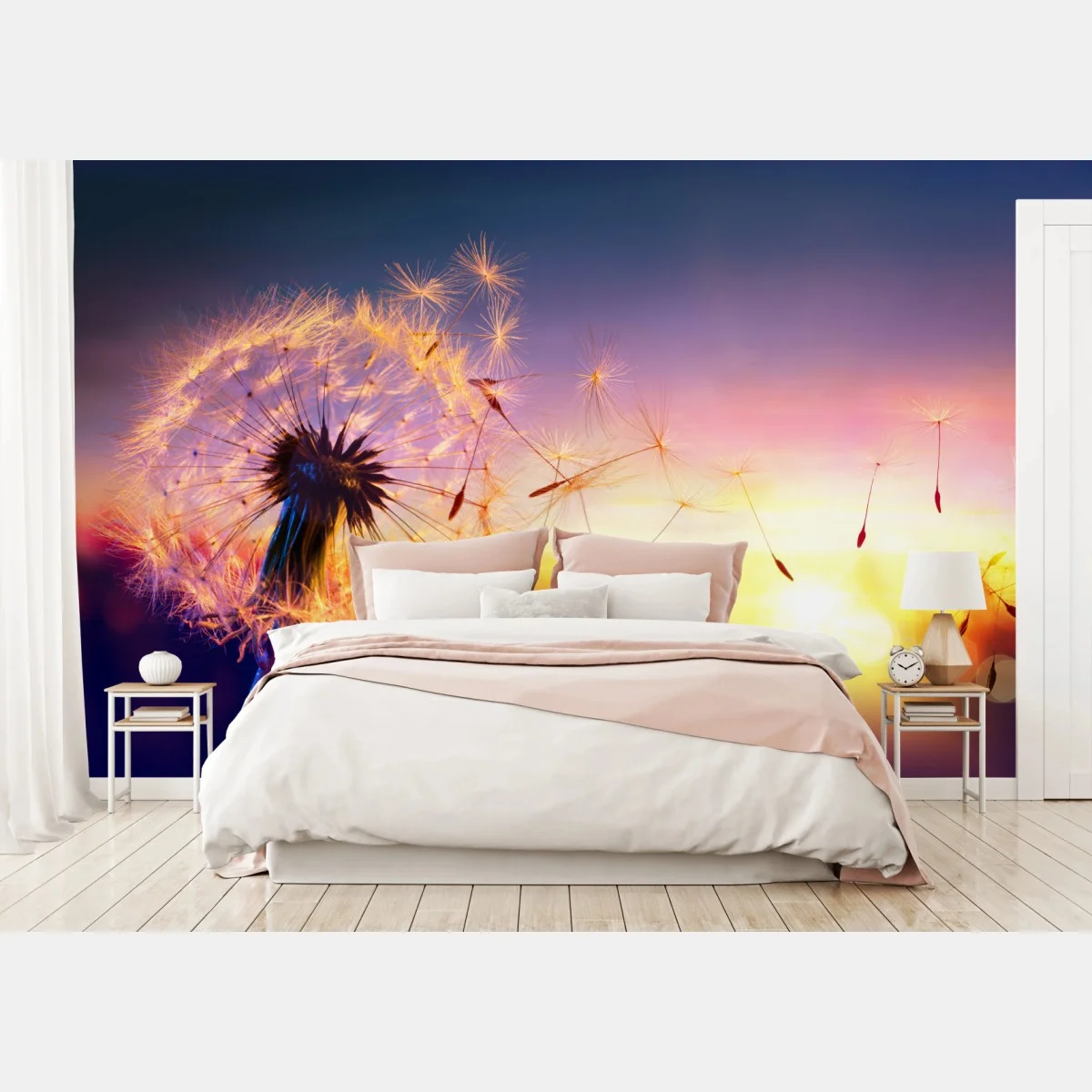 - natura, alba, tramonto, luce dorata, soffione, dente di leone, delicato, bokeh, semi al vento, atmosfera sognante