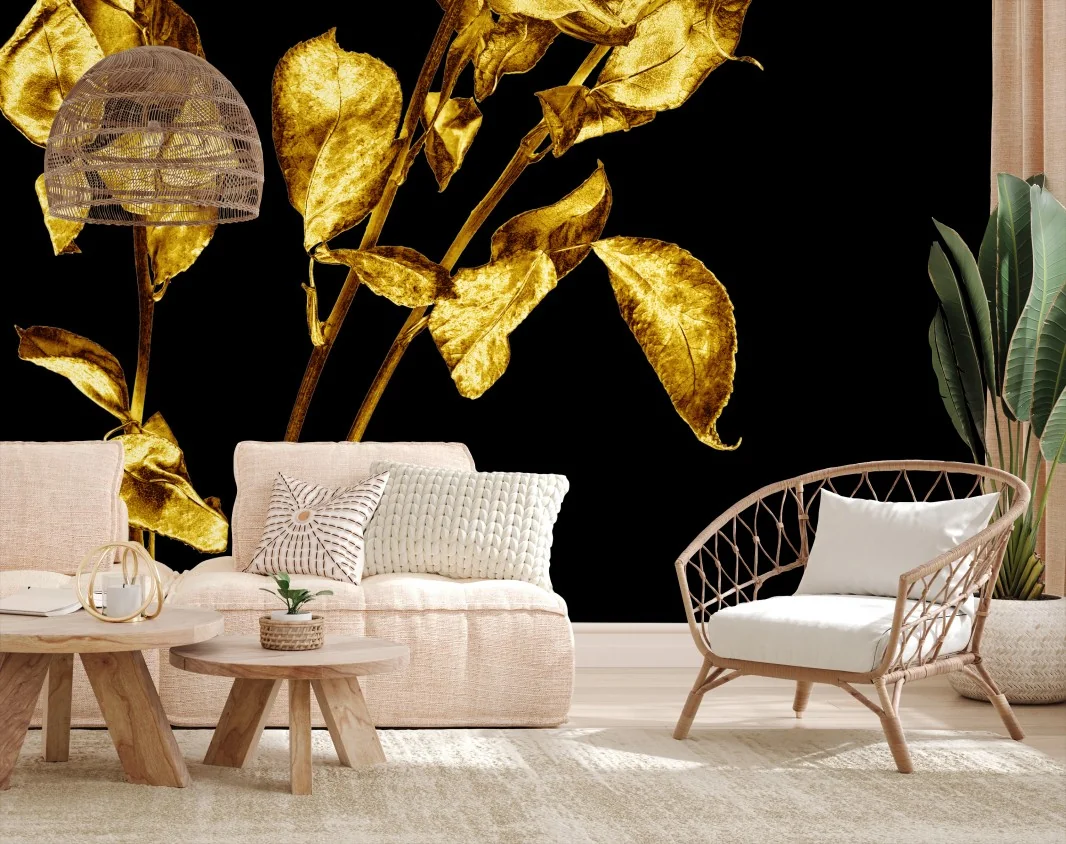 - botanica, rose, minimalismo, lusso, eleganza, oro, contrasto nero, fiori dorati, stile moderno, rose dorate