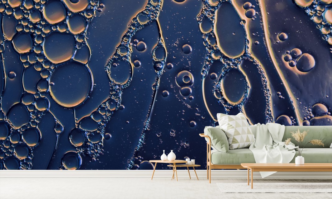 Carta da parati Astrazione di bolle dorate su sfondo blu