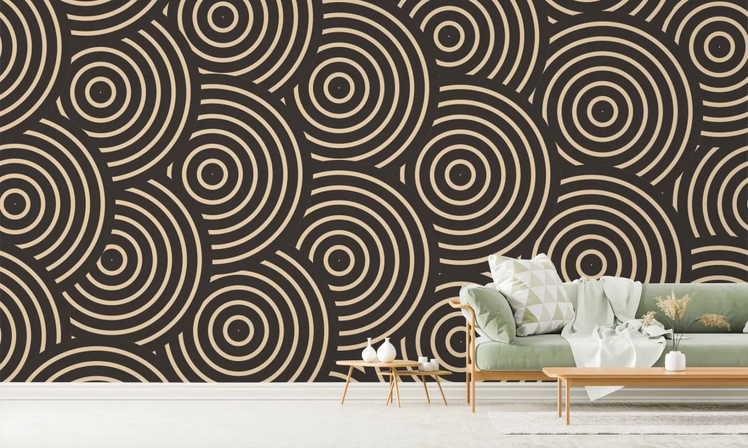 Carta da parati Motivo a cerchi concentrici beige e marrone
