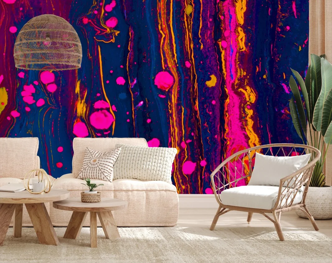 Carta da parati Marmo psichedelico fucsia su blu profondo