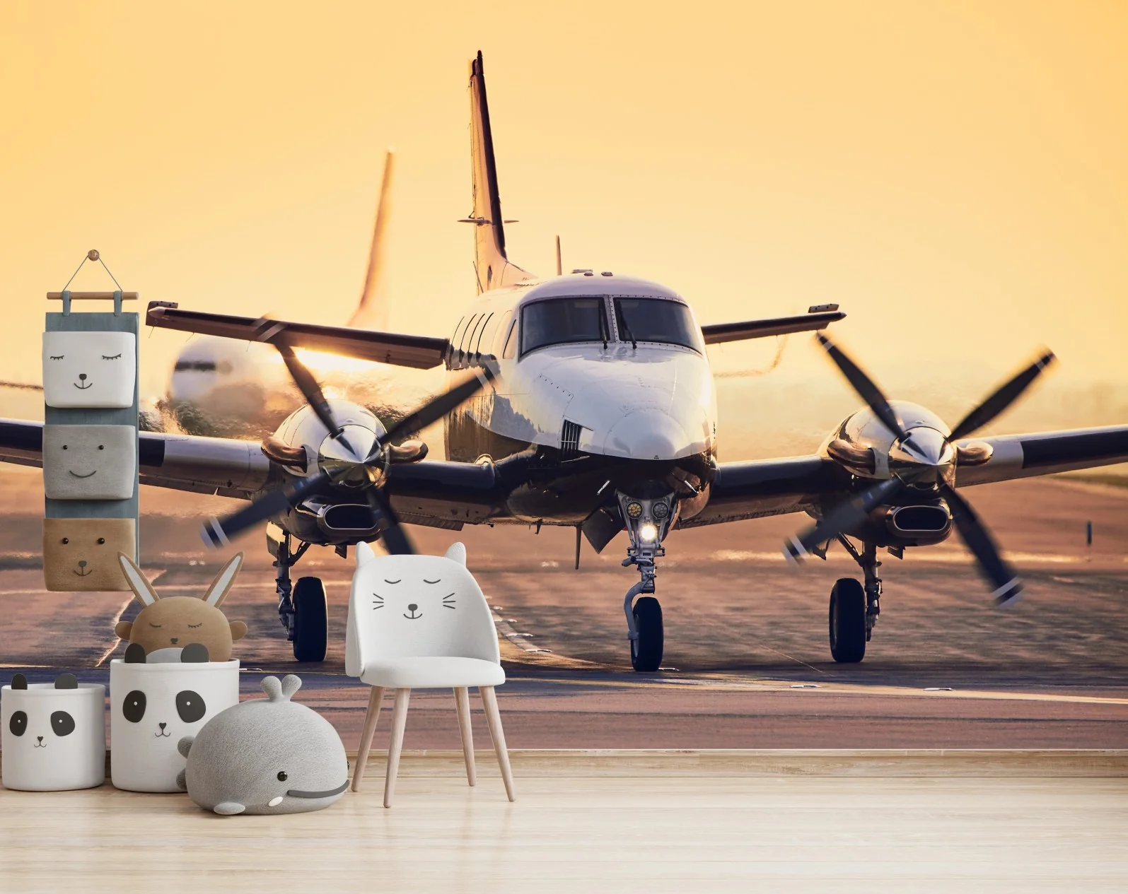 Carta da parati Aereo bimotore al tramonto