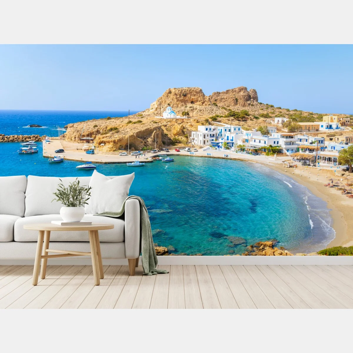 - case bianche, acque turchesi, paesaggio mediterraneo, spiaggia, mare, isola, barche, villaggio, baia, porto