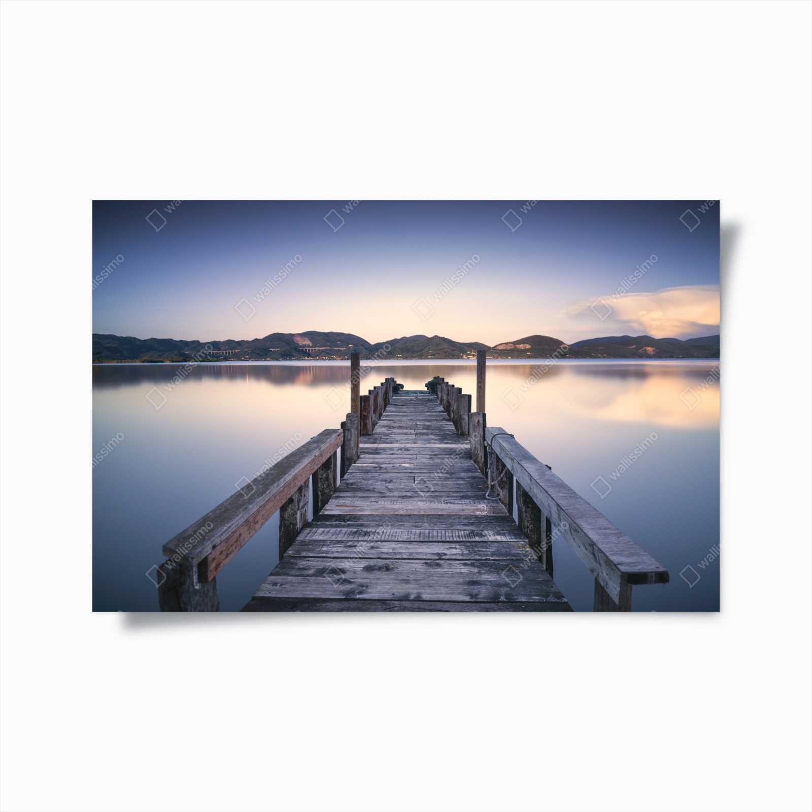Poster Molo in legno al tramonto, Massaciuccoli, Toscana