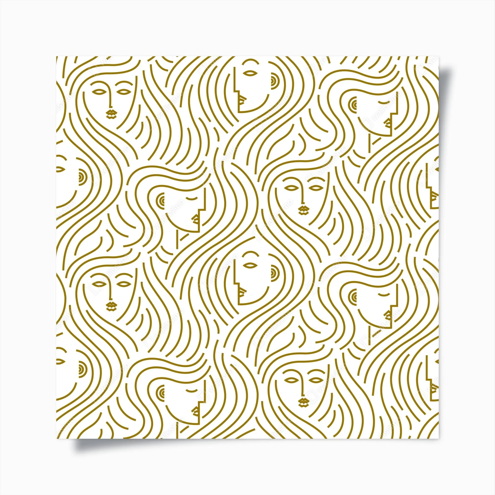- elegante, minimalista, motivo, decorazione murale, astratto, dorato, pattern senza cuciture, volti femminili, capelli ondulati, linee continue