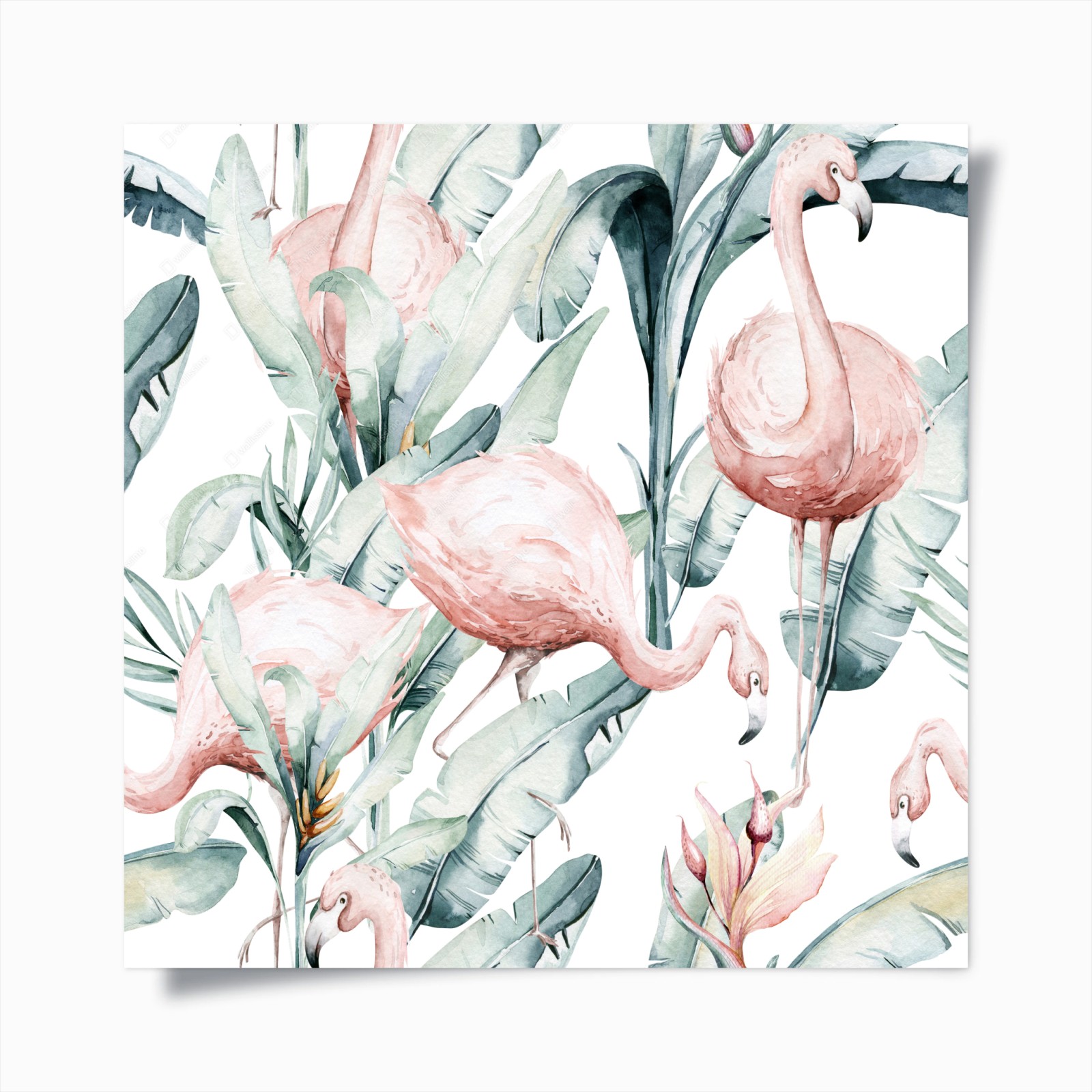 - verde, tropicale, elegante, motivo, esotico, botanico, foglie, acquerello, fenicotteri, rosa