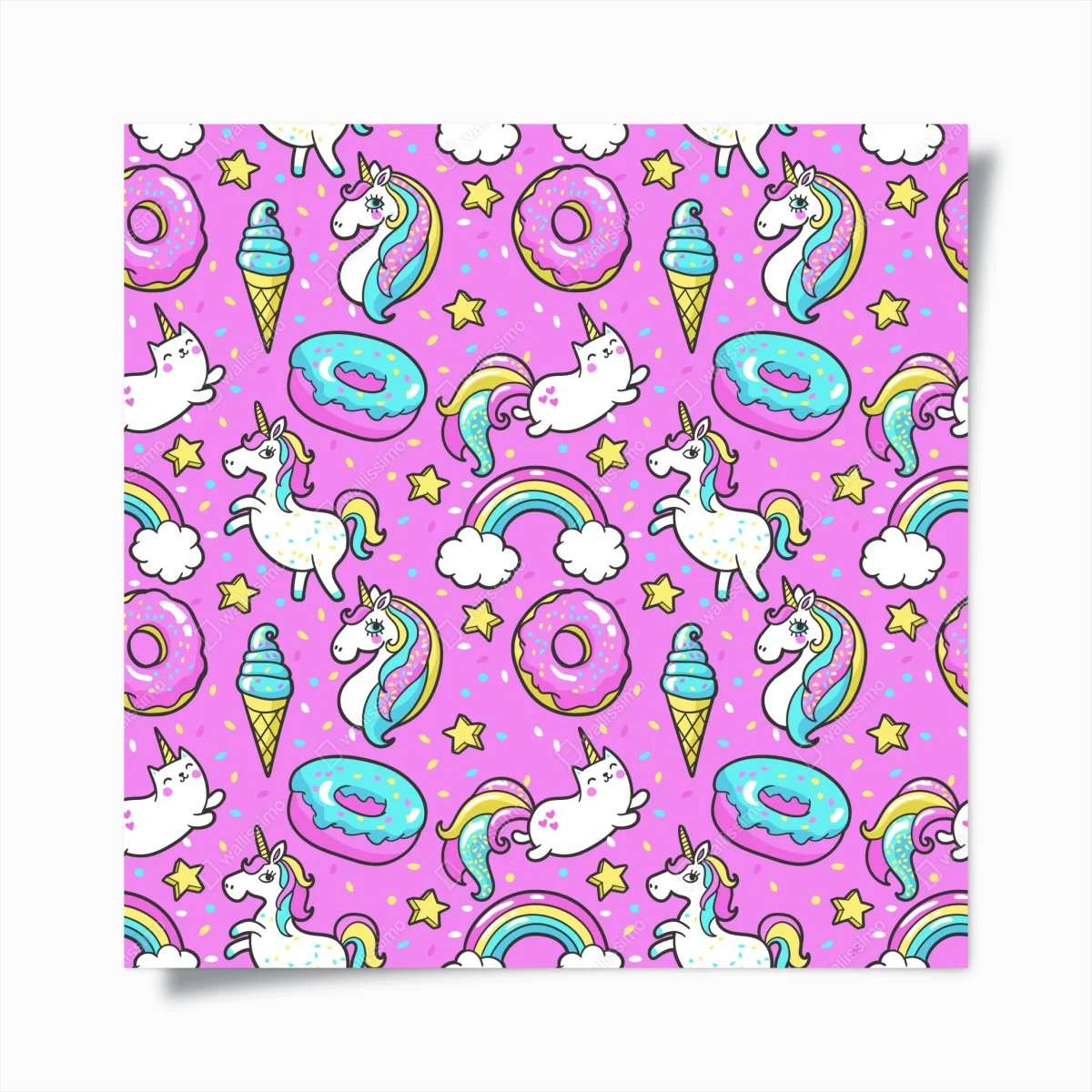 Poster Magico motivo di unicorni, arcobaleni e dolci