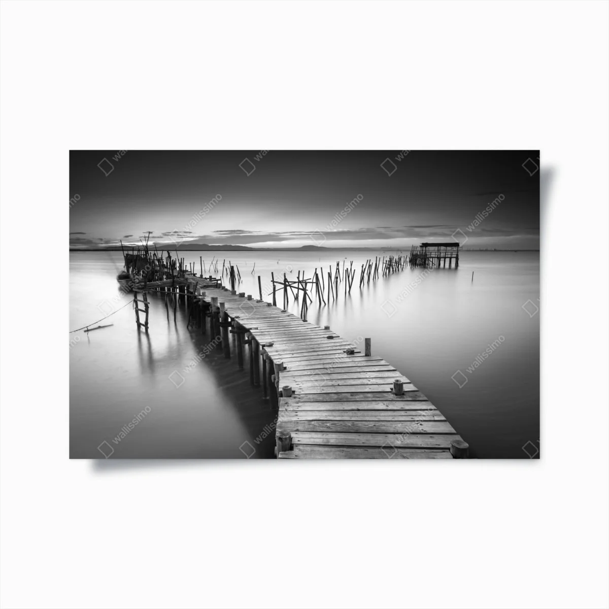 - paesaggio, riflessi, bianco e nero, mare, tramonto, minimalismo, lunga esposizione, molo di legno, cielo drammatico, acque calme