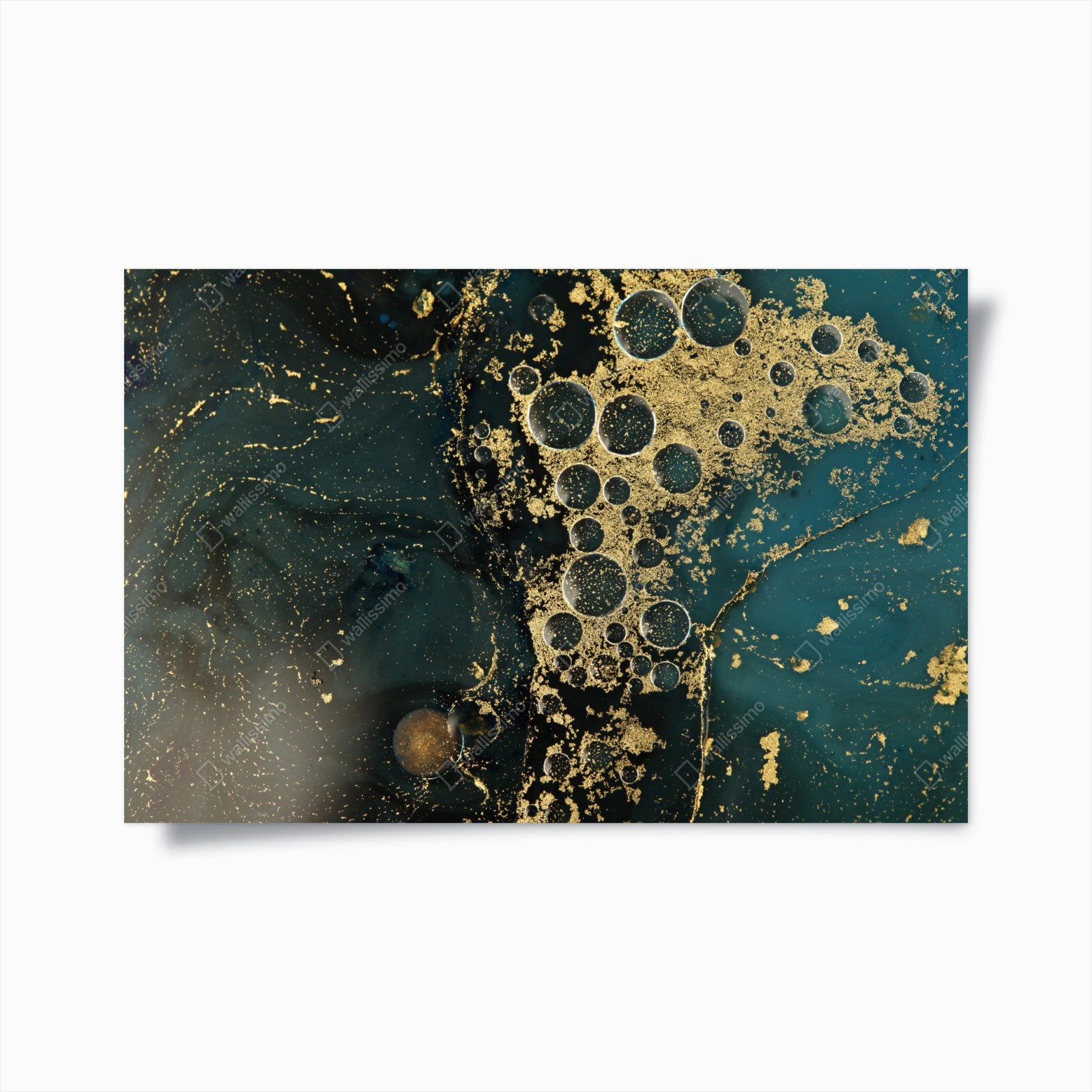 Poster Oro liquido su blu petrolio, texture astratta