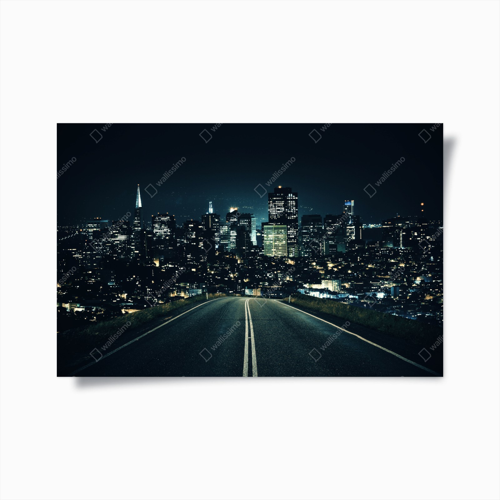 Poster Strada verso la città moderna illuminata