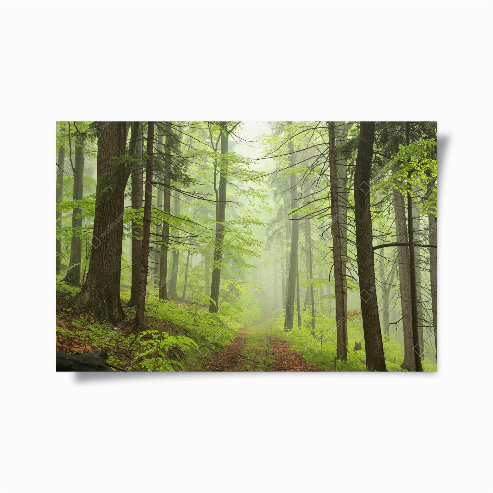 Poster Foresta nebbiosa: sentiero tra gli alberi