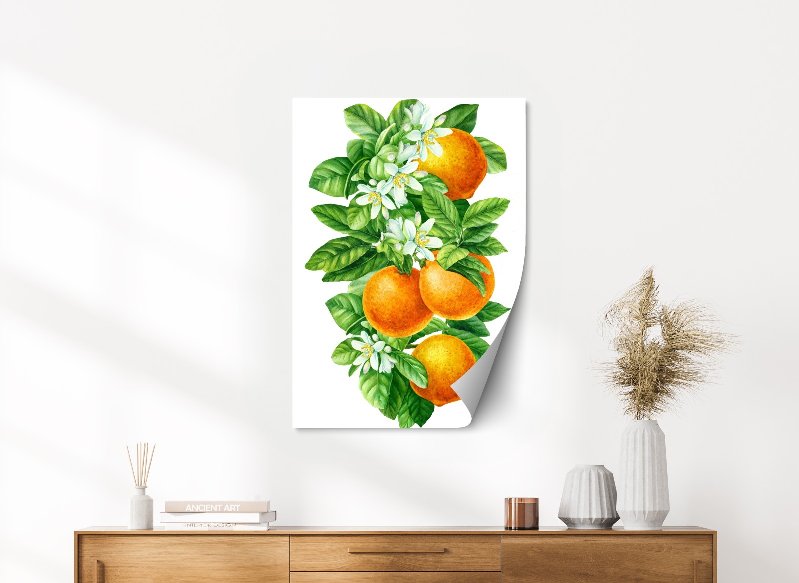 - natura, foglie verdi, decorazione murale, illustrazione botanica, estivo, acquerello, agrumi, arance, fiori d'arancio, stile mediterraneo