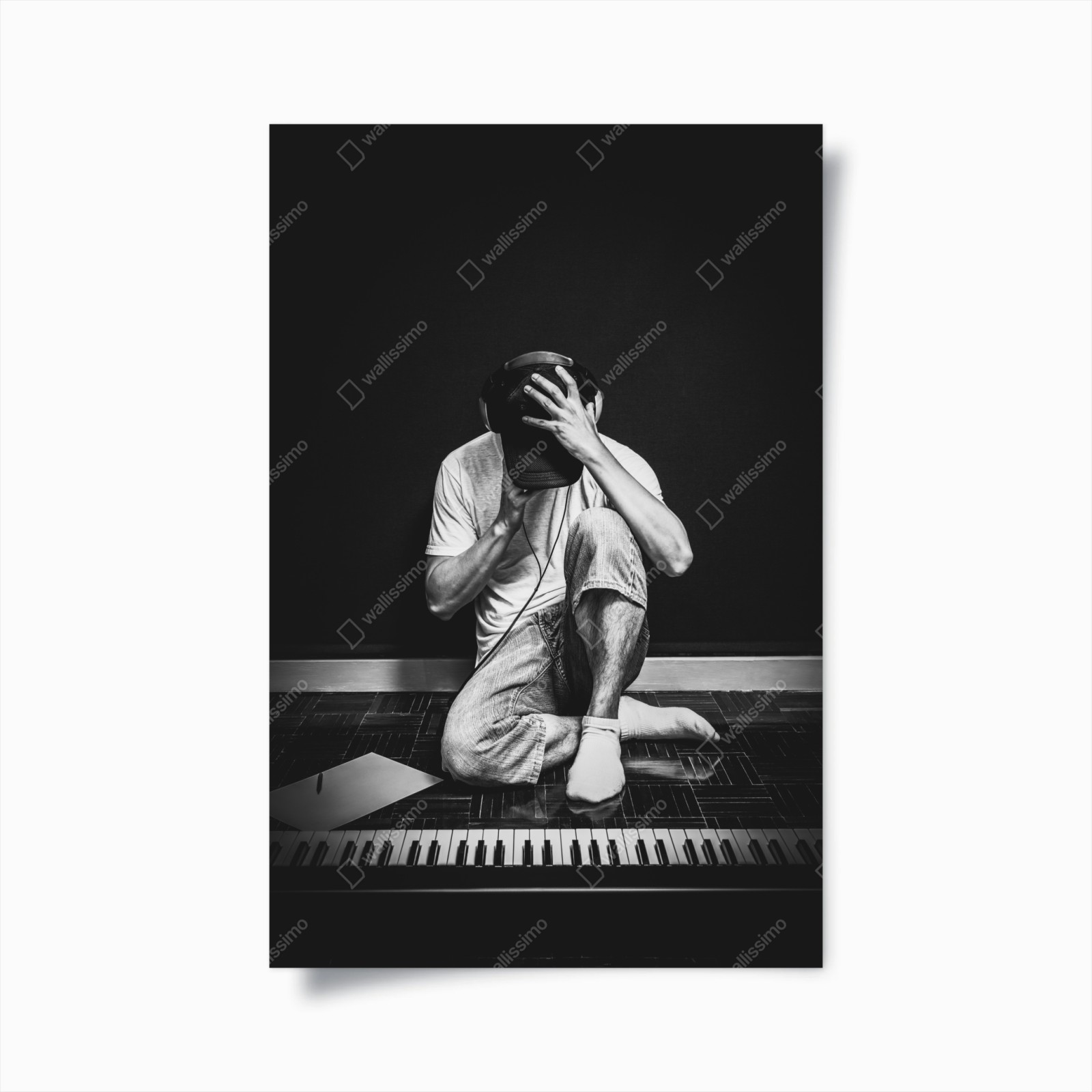 - bianco e nero, solitudine, pianoforte, cuffie, composizione, musicista, creatività, emozione, introspezione, studio