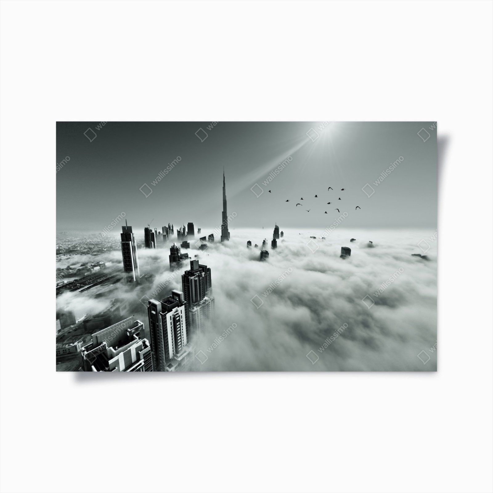 - nuvole, skyline, architettura, urbano, nebbia, orizzonte, città, grattacieli, dubai, modernità