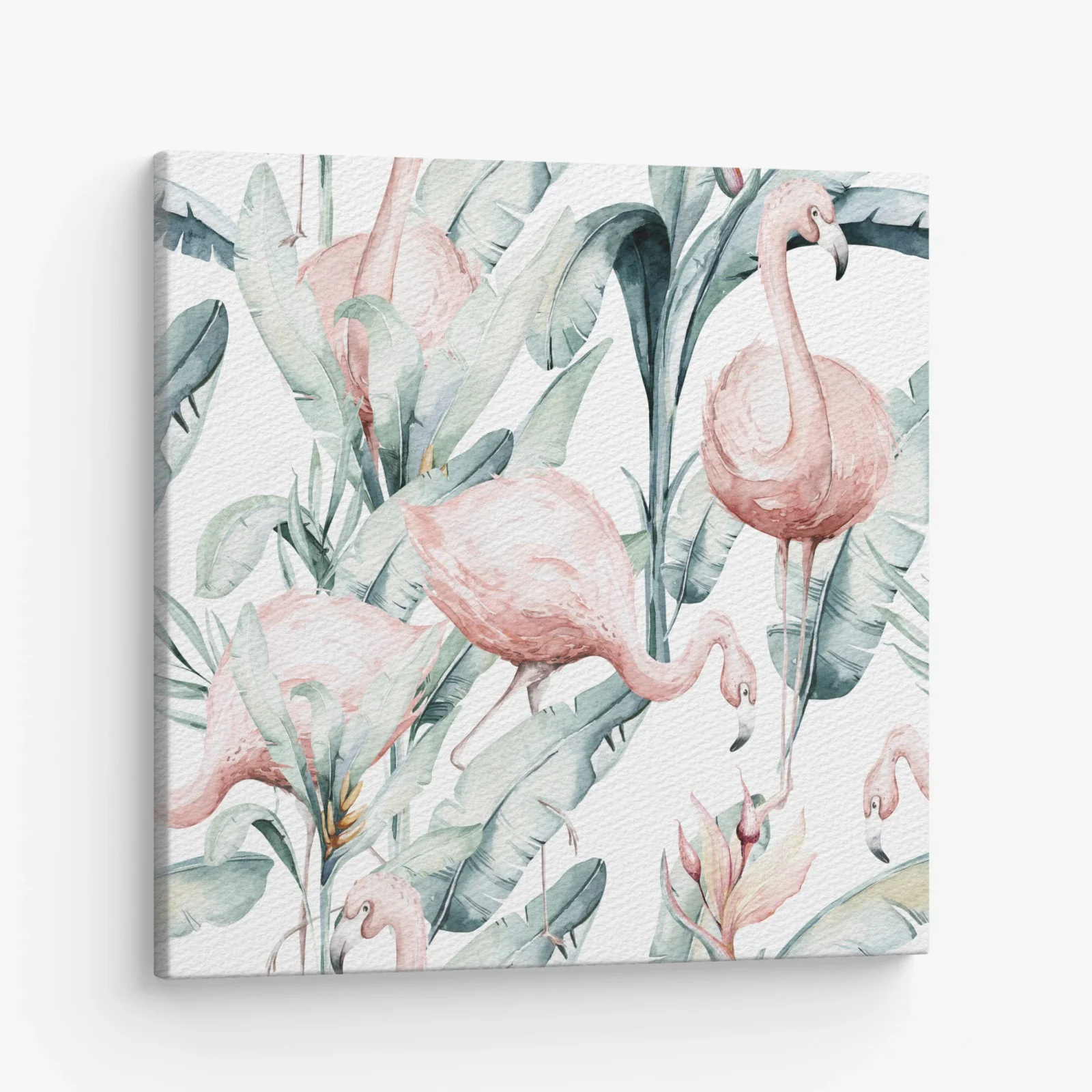 Quadro su tela Motivo di fenicotteri tropicali in acquerello
