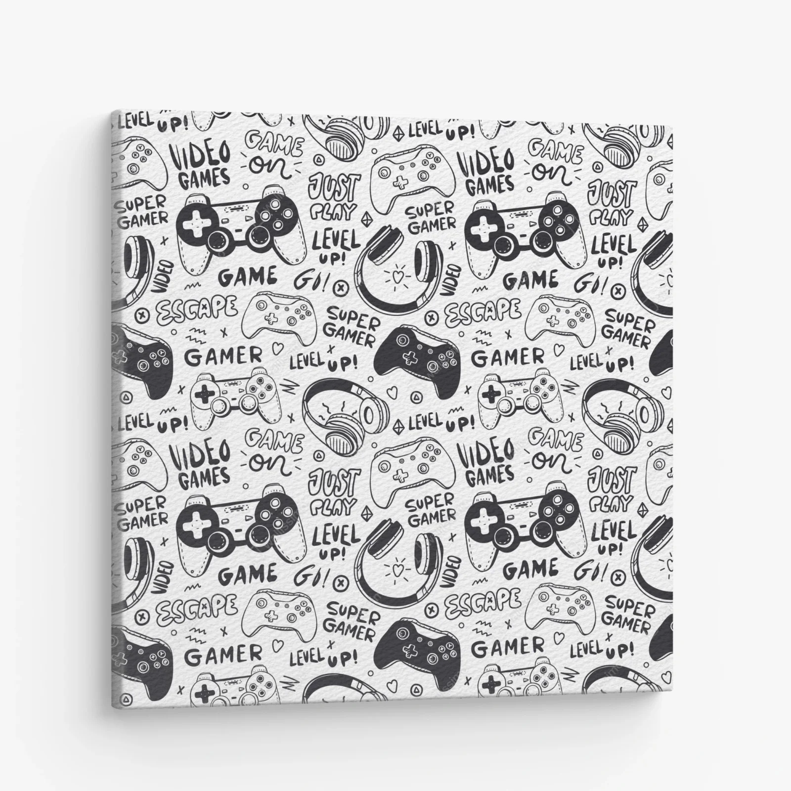 Quadro su tela Pattern videogiochi e controller in bianco e nero
