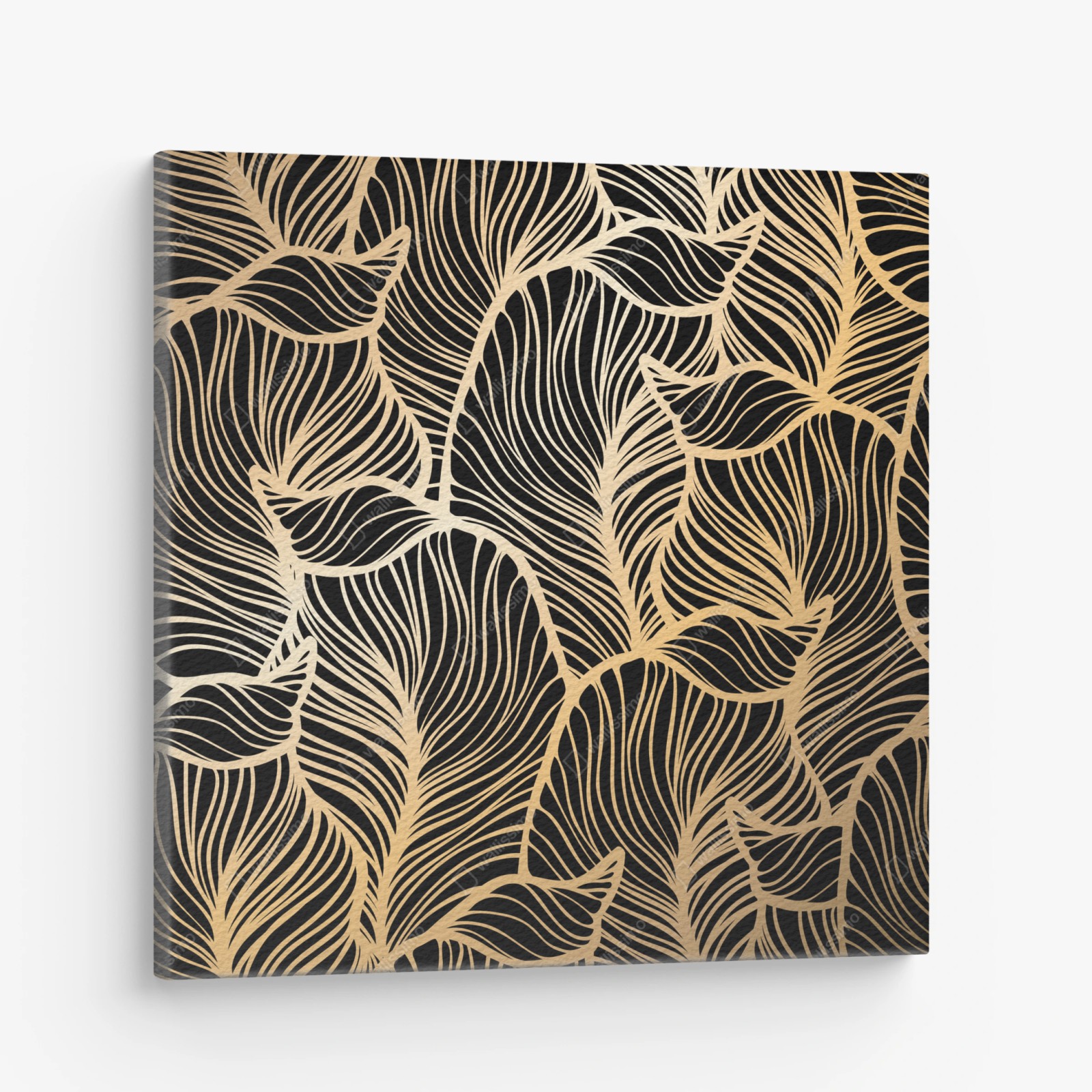 Quadro su tela Motivo foglie dorate su sfondo nero