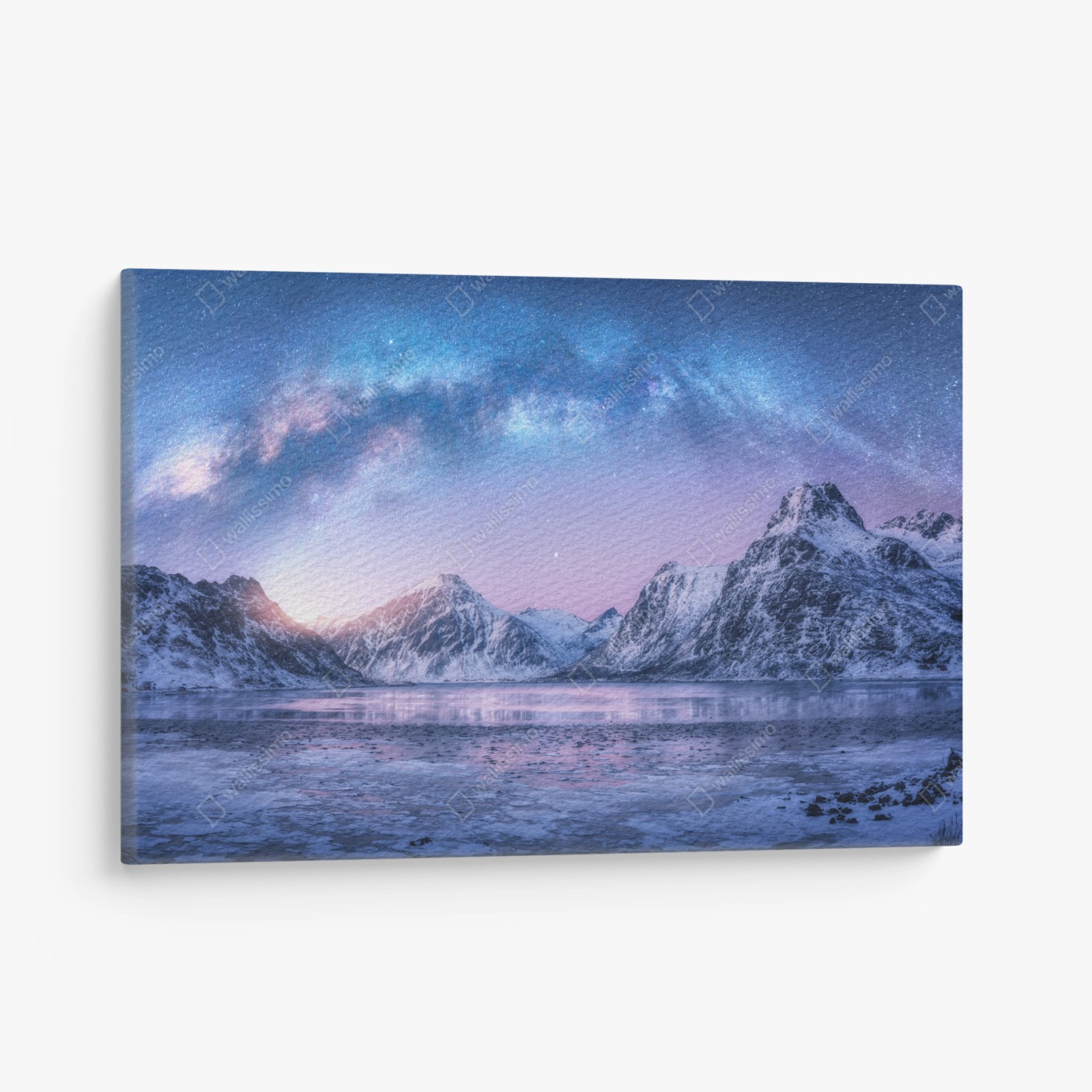 Quadro su tela Notte polare: arco della Via Lattea sulle montagne innevate