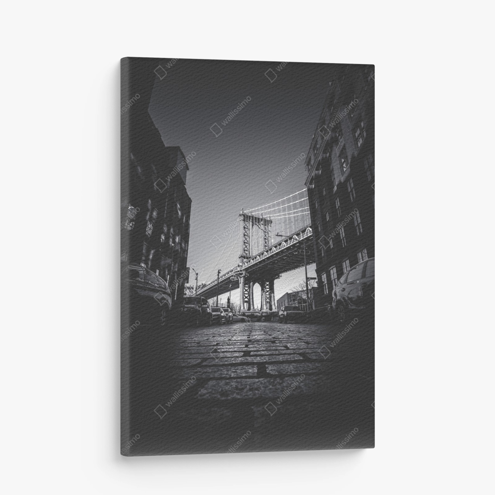 - ponte, skyline, architettura, bianco e nero, urbano, città, strada acciottolata, fotografia urbana, brooklyn, auto parcheggiate