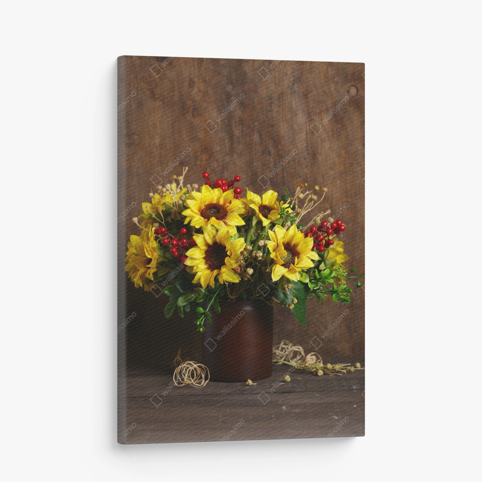 Quadro su tela Bouquet di girasoli autunnale su sfondo rustico