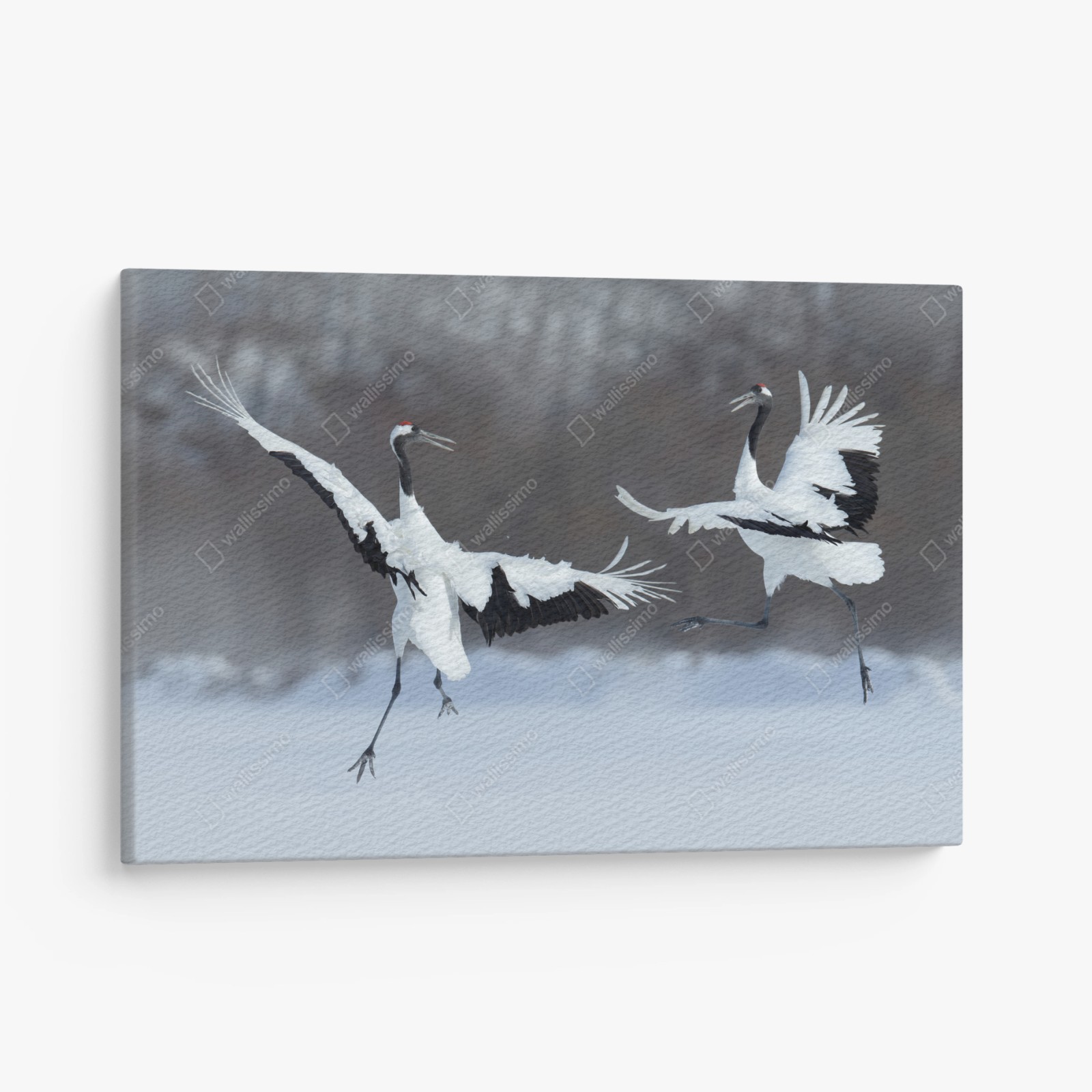 Quadro su tela Danza delle gru di Hokkaido nella neve