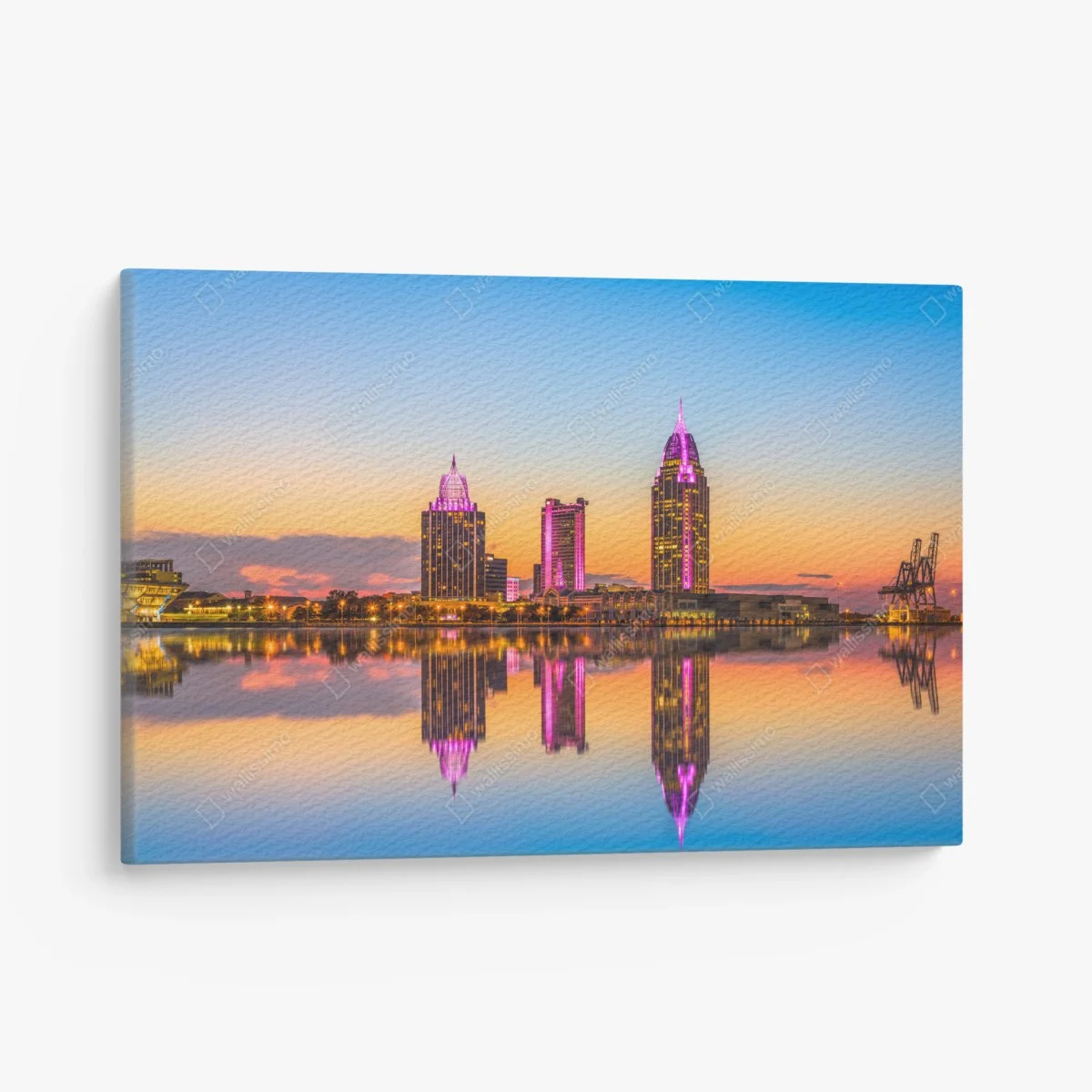 Quadro su tela Tramonto e riflessi sulla skyline di Mobile