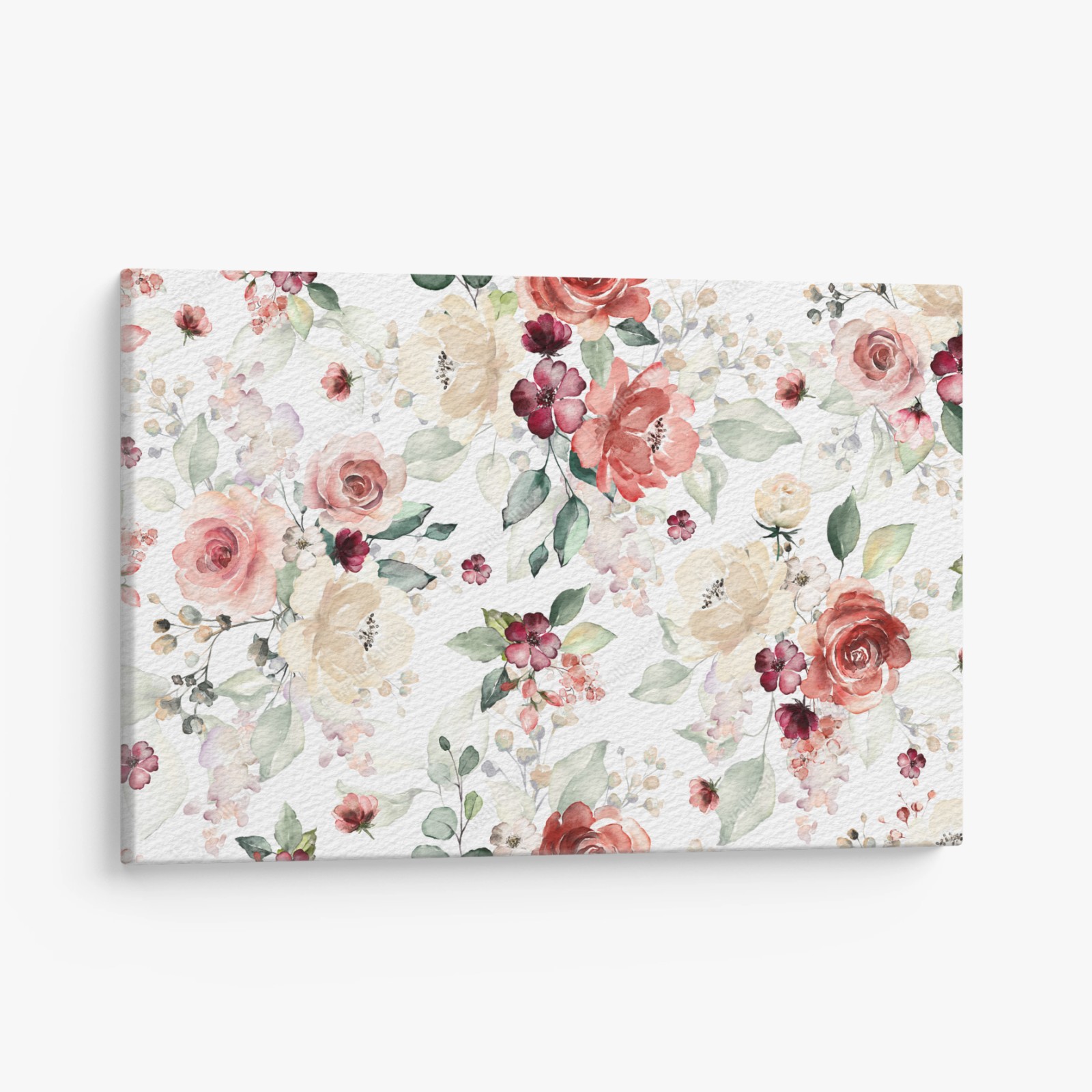 Quadro su tela Motivo floreale acquerellato in tonalità pesca e crema
